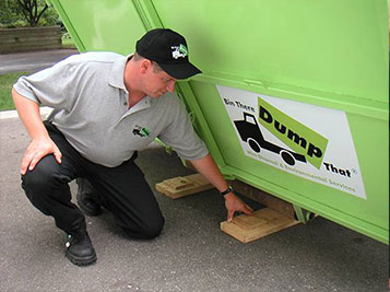 Bin There Dump That dumpster rental services protects your homes and driveway by placing our bins on wooden planks. Our Bins are and have easy access doors. We offer same day delivery.