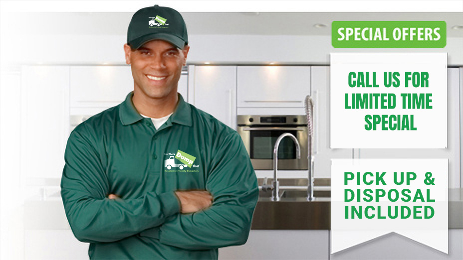 Bin There Dump That dumpster rental services protects your homes and driveway by placing our bins on wooden planks. Our Bins are and have easy access doors. We offer same day delivery.